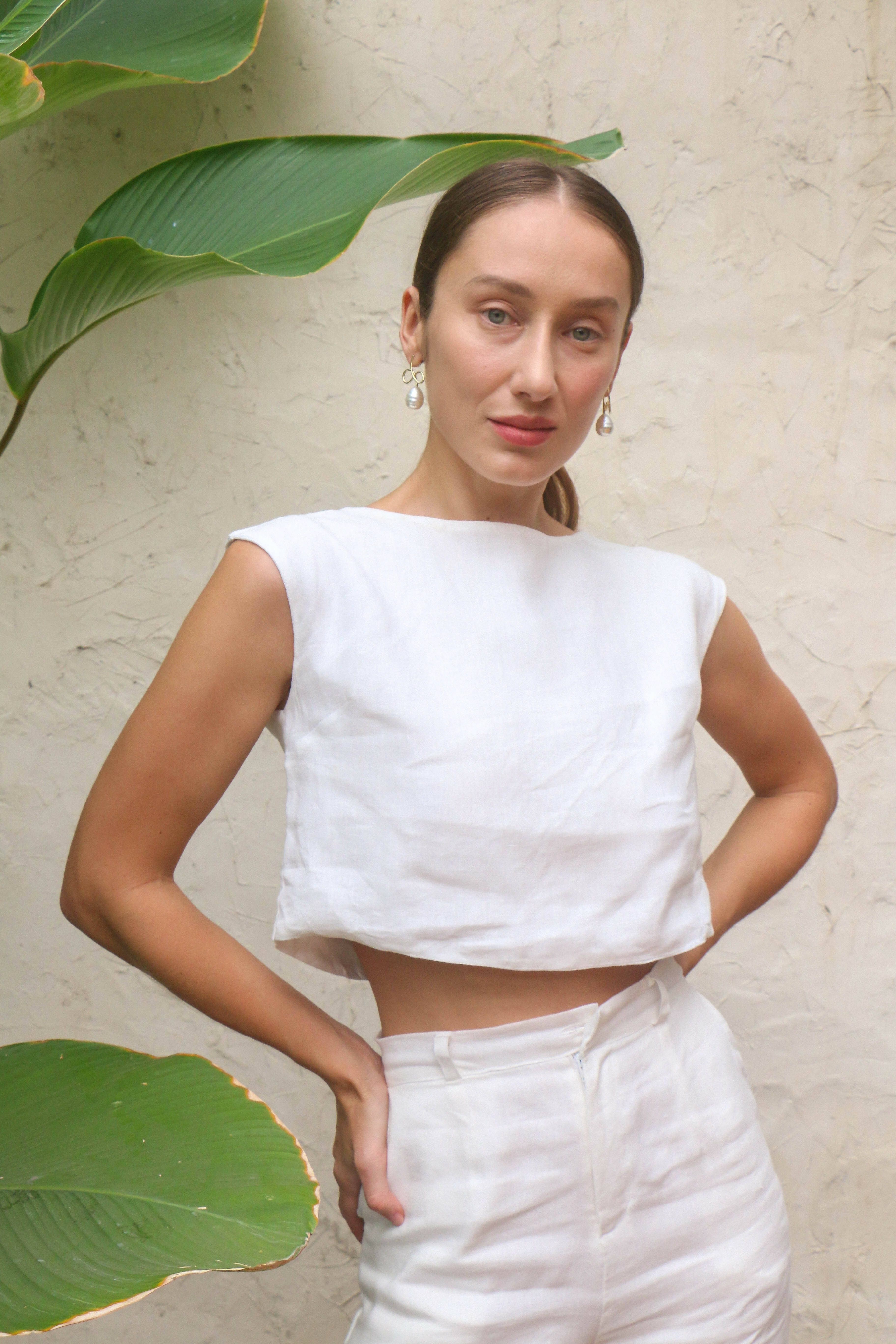 A favourite! Our Marshall top has a slightly cropped silhouette, high neckline and relaxed fit. Fully lined.